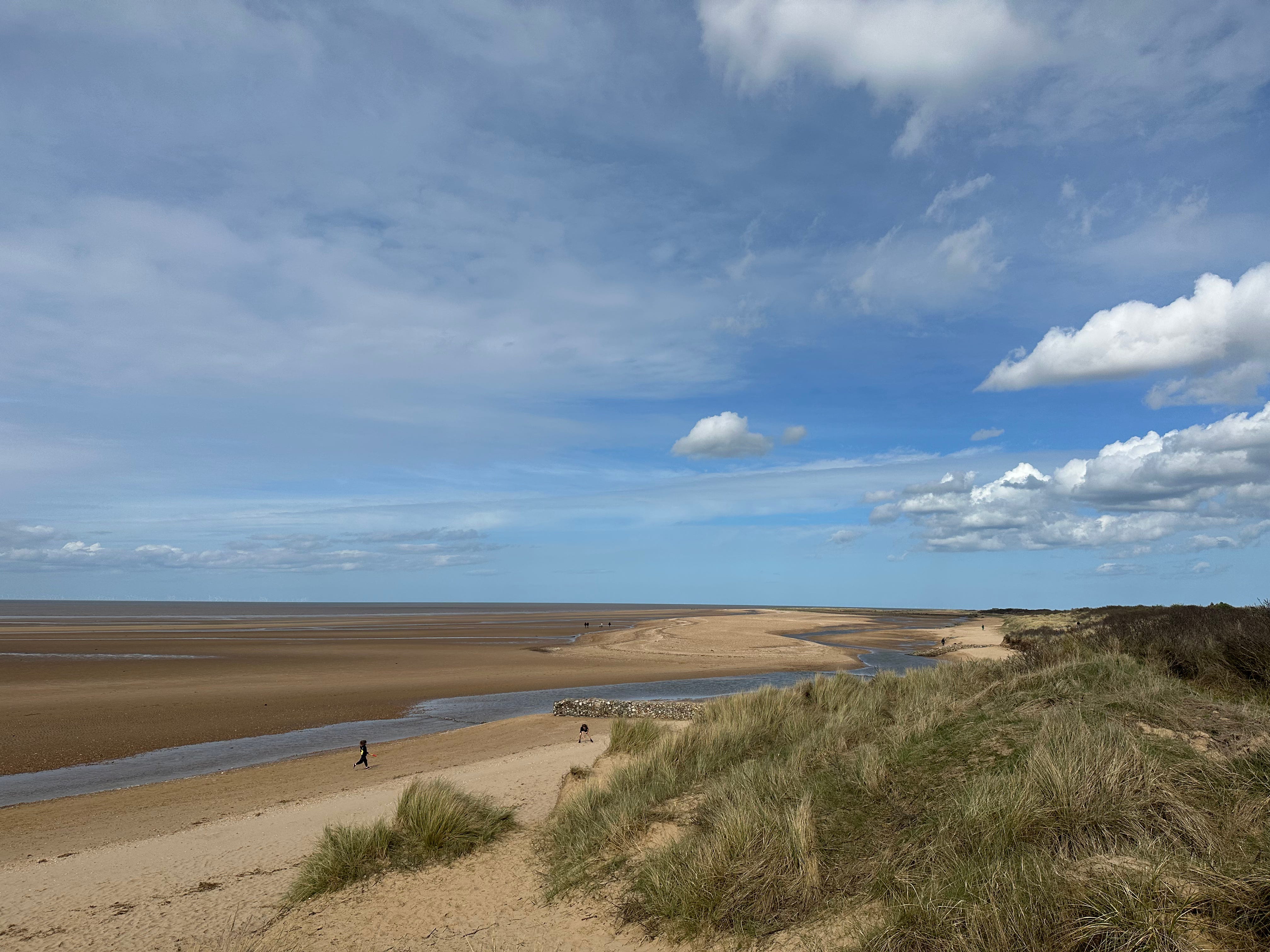 Here in Norfolk, everything is flat. The skies feel infinitely bigger, more expansive somehow than at home. The coastline stretches in one long, unbroken line of soft sand, edged with tufts of seagrass and the hardy, wind-battered sea buckthorn. At low tide, the sea retreats for miles, making swimming something that can only really be done once, or if you’re lucky, twice a day.